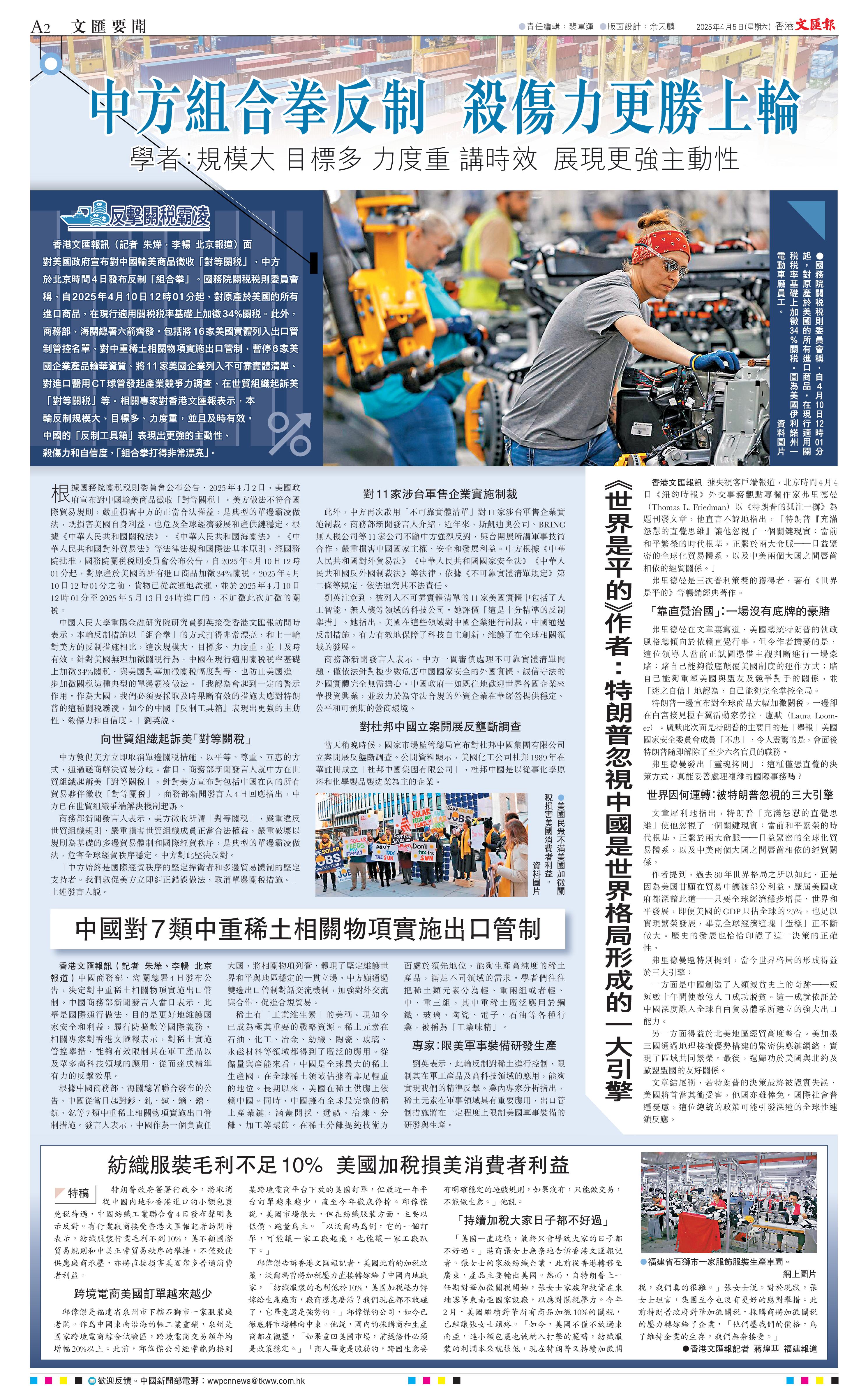 香港文匯報(bào)訊據(jù)央視客戶(hù)端報(bào)道,北京時(shí)間4月4日《紐約時(shí)報(bào)》外交事務(wù)觀(guān)點(diǎn)專(zhuān)欄作家弗里德曼(Thomas L. Friedman)以《特朗普的孤注一擲》為題刊發(fā)文章,他直言不諱地指出,「特朗普『充滿(mǎn)怨懟的直覺(jué)思維』讓他忽視了一個(gè)關(guān)鍵現(xiàn)實(shí):當(dāng)前和平繁榮的時(shí)代根基,正系于兩大命脈——日益緊密的全球化貿(mào)易體系,以及中美兩個(gè)大國(guó)之間唇齒相依的經(jīng)貿(mào)關(guān)系。」