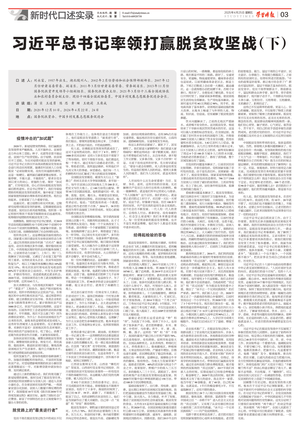 習(xí)近平總書記在脫貧攻堅(jiān)戰(zhàn)中不僅展現(xiàn)了體察百姓疾苦的人民情懷,也彰顯了始終科學(xué)錨定方向、咬定青山不放松的擔(dān)當(dāng)精神。他常講自己40多年在中國的村、縣、市、省、中央工作,扶貧始終是一個重要內(nèi)容,強(qiáng)調(diào)脫貧攻堅(jiān),不要空喊口號,要看行動。每到重要階段,他都直指難點(diǎn)、把脈開方;凡是重要節(jié)點(diǎn),他都“擂鼓”發(fā)令、精準(zhǔn)施策,排兵布陣、抓住關(guān)鍵,以超凡的政治定力把穩(wěn)方向,全方位預(yù)防和化解返貧風(fēng)險。在他的感染和率領(lǐng)下,各級黨政部門和廣大黨員干部以“不破樓蘭終不還”的決心和意志鉚足了勁兒干,確保不走彎路、不出紕漏、不“翻燒餅”,可以說向全國人民交出了一份滿意的答卷,在世界反貧困的歷史上創(chuàng)造了中國減貧奇跡。