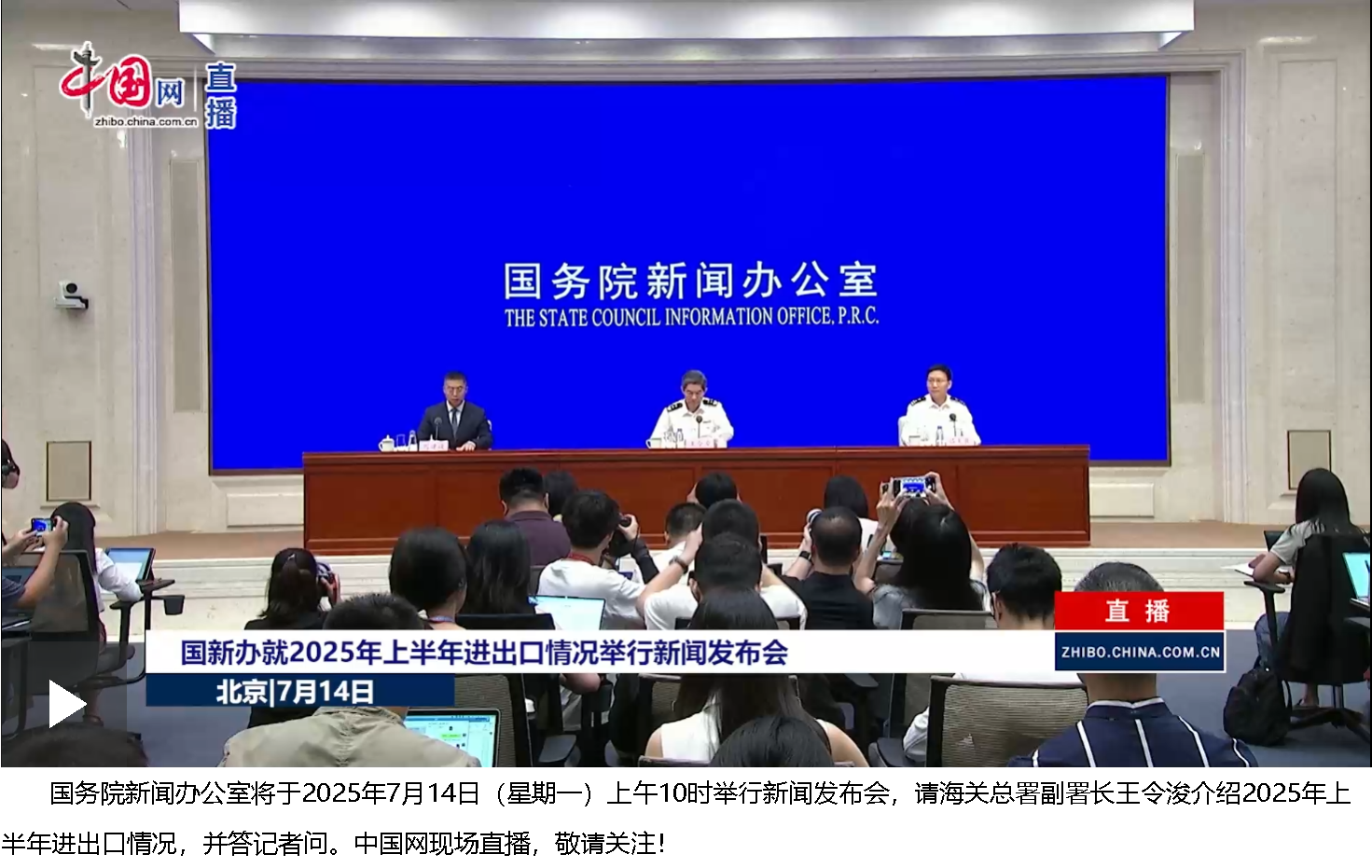 女士們、先生們,大家上午好!歡迎出席國(guó)務(wù)院新聞辦新聞發(fā)布會(huì)。今天我們進(jìn)行經(jīng)濟(jì)數(shù)據(jù)例行發(fā)布,我們邀請(qǐng)到海關(guān)總署副署長(zhǎng)王令浚先生,請(qǐng)他向大家介紹2025年上半年進(jìn)出口情況,并回答大家關(guān)心的問(wèn)題。出席今天發(fā)布會(huì)的還有:海關(guān)總署新聞發(fā)言人、統(tǒng)計(jì)分析司司長(zhǎng)呂大良先生。