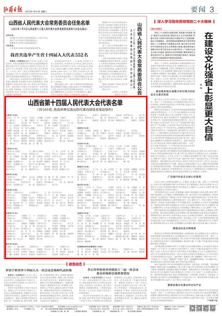 山西省第十四屆人民代表大會代表名單和中國人民政治協(xié)商會議第十三屆山西省委員會委員名單(各549名)