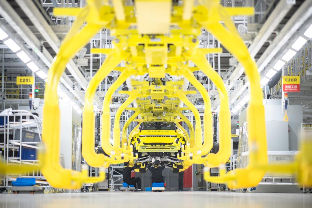 2023年1月11日,在位于湖北省武漢市經(jīng)開區(qū)智能網(wǎng)聯(lián)和電動汽車產(chǎn)業(yè)園的路特斯全球智能工廠,工人在流水線上作業(yè)。新華社記者肖藝九攝