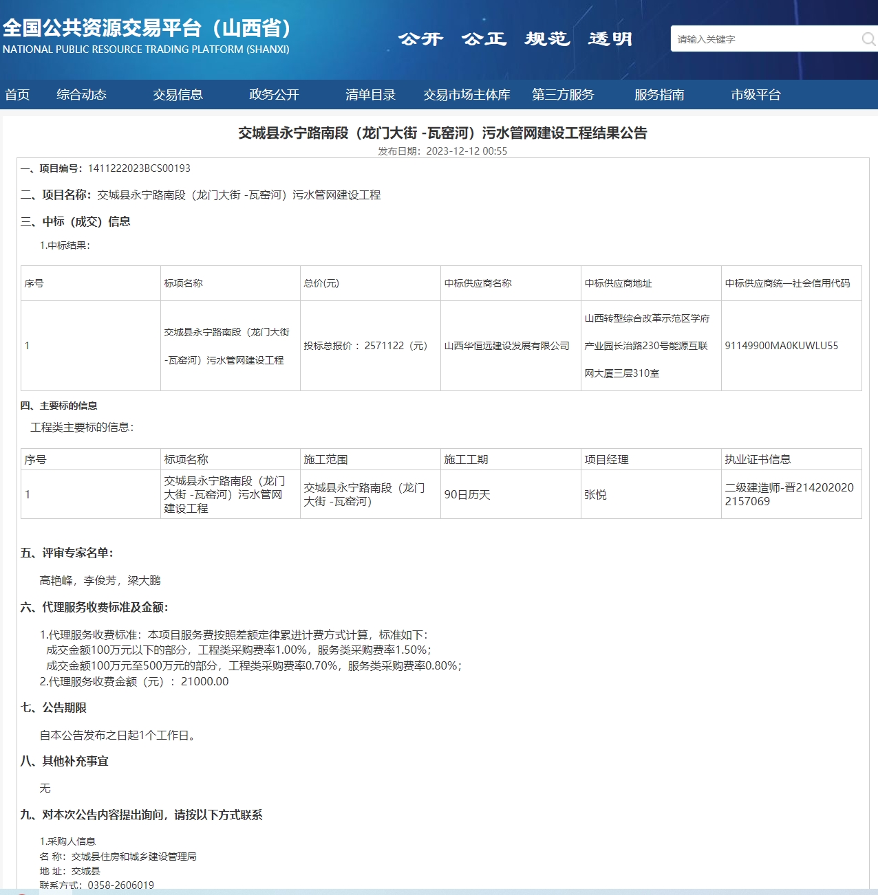 交城縣永寧路南段(龍門(mén)大街 -瓦窯河)污水管網(wǎng)建設(shè)工程