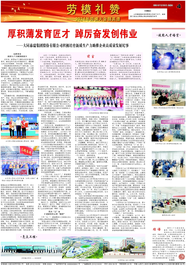 厚積薄發(fā)育匠才 踔厲奮發(fā)創(chuàng)偉業(yè) ——大同泰瑞集團股份有限公司積極培育新質生產(chǎn)力助推企業(yè)高質量發(fā)展紀事