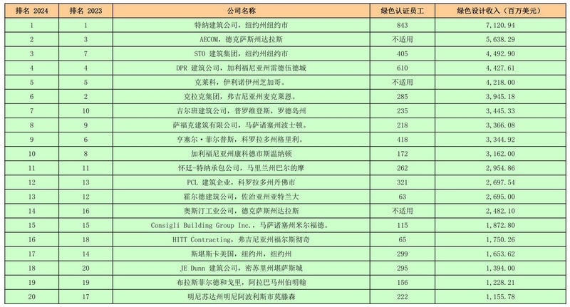 ENR 2024年度綠色建筑承包商100強(qiáng)