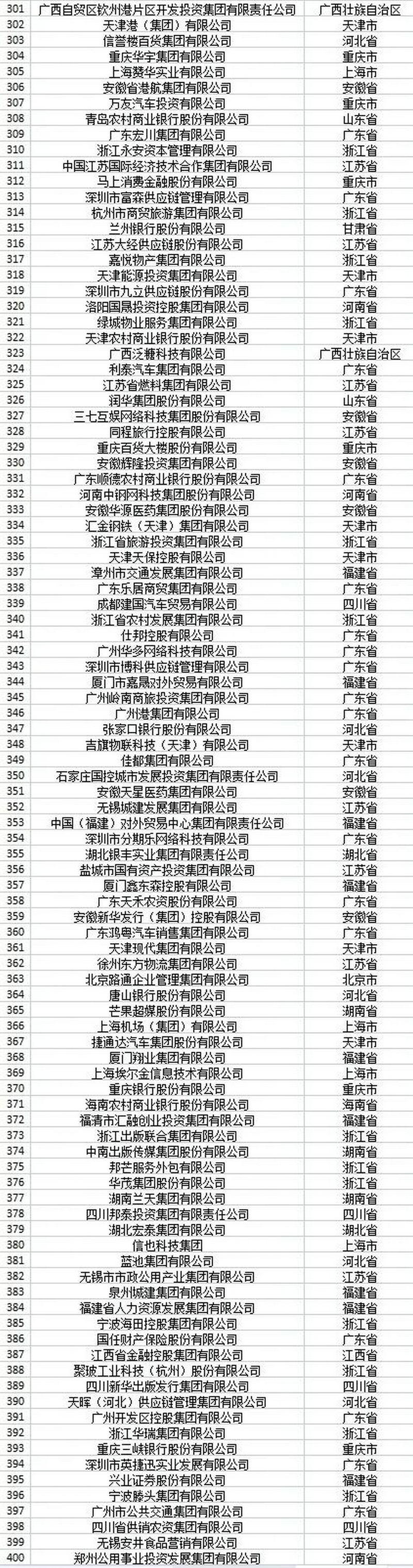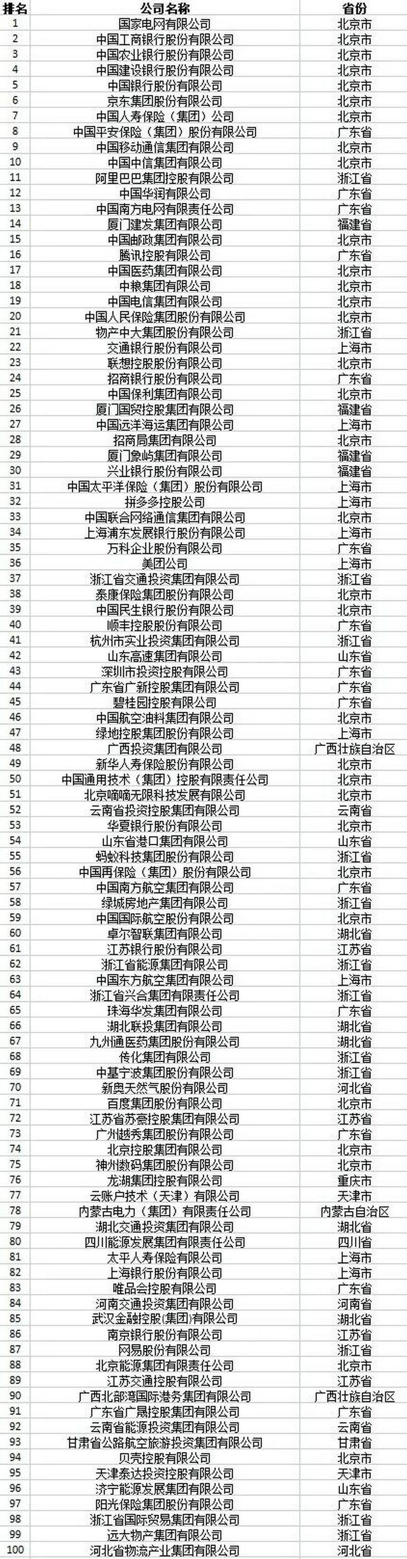 位列榜單前10位的企業(yè)分別是:國家電網(wǎng)有限公司、中國工商銀行股份有限公司、中國農業(yè)銀行股份有限公司、中國建設銀行股份有限公司、中國銀行股份有限公司、京東集團股份有限公司、中國人壽保險(集團)公司、中國平安保險(集團)股份有限公司、中國移動通信集團有限公司和中國中信集團有限公司。