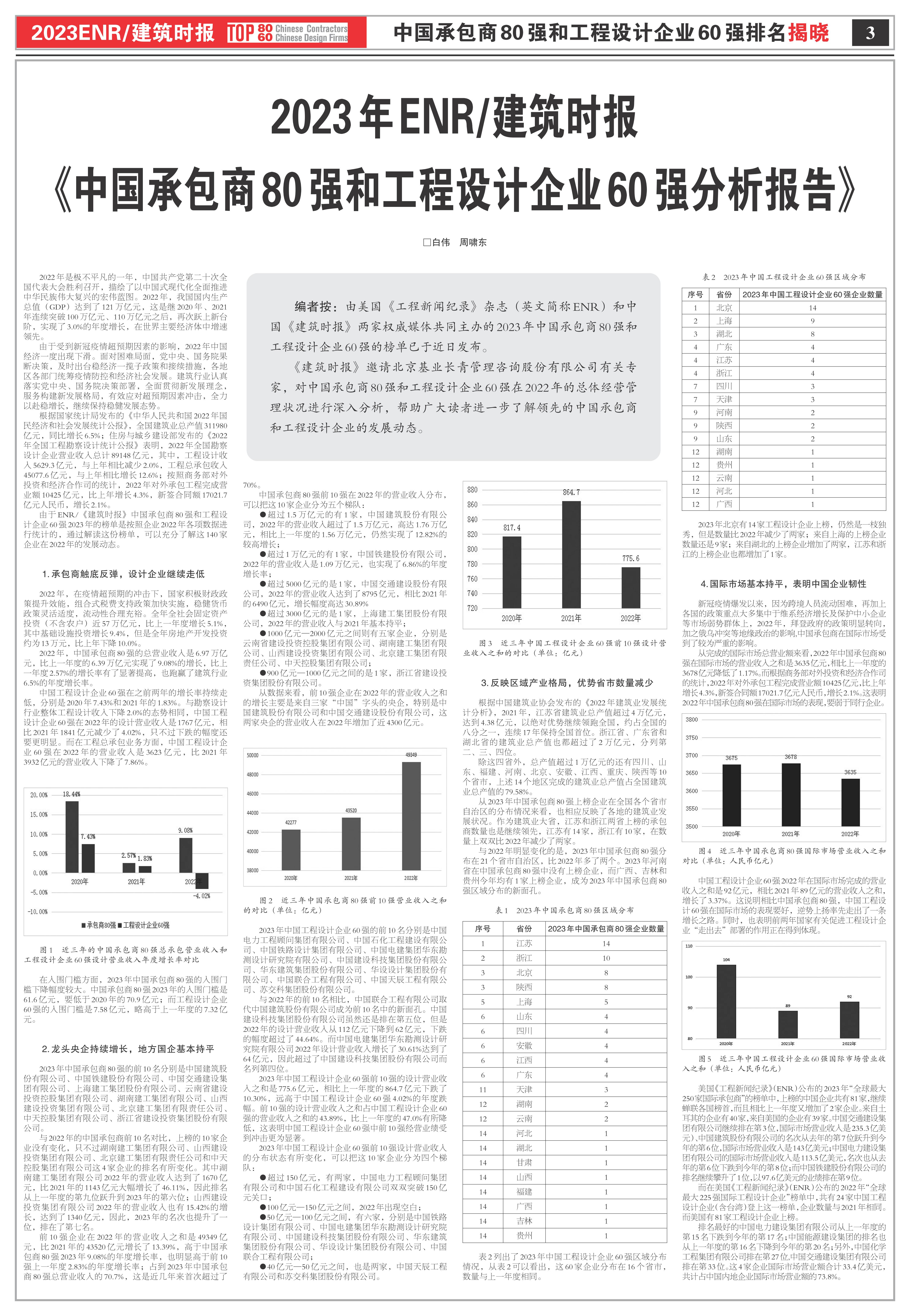 近日,《建筑時報》和美國《工程新聞記錄》(ENR)共同發(fā)布2023ENR/建筑時報“中國承包商80強和工程設計企業(yè)60強”排名榜單。