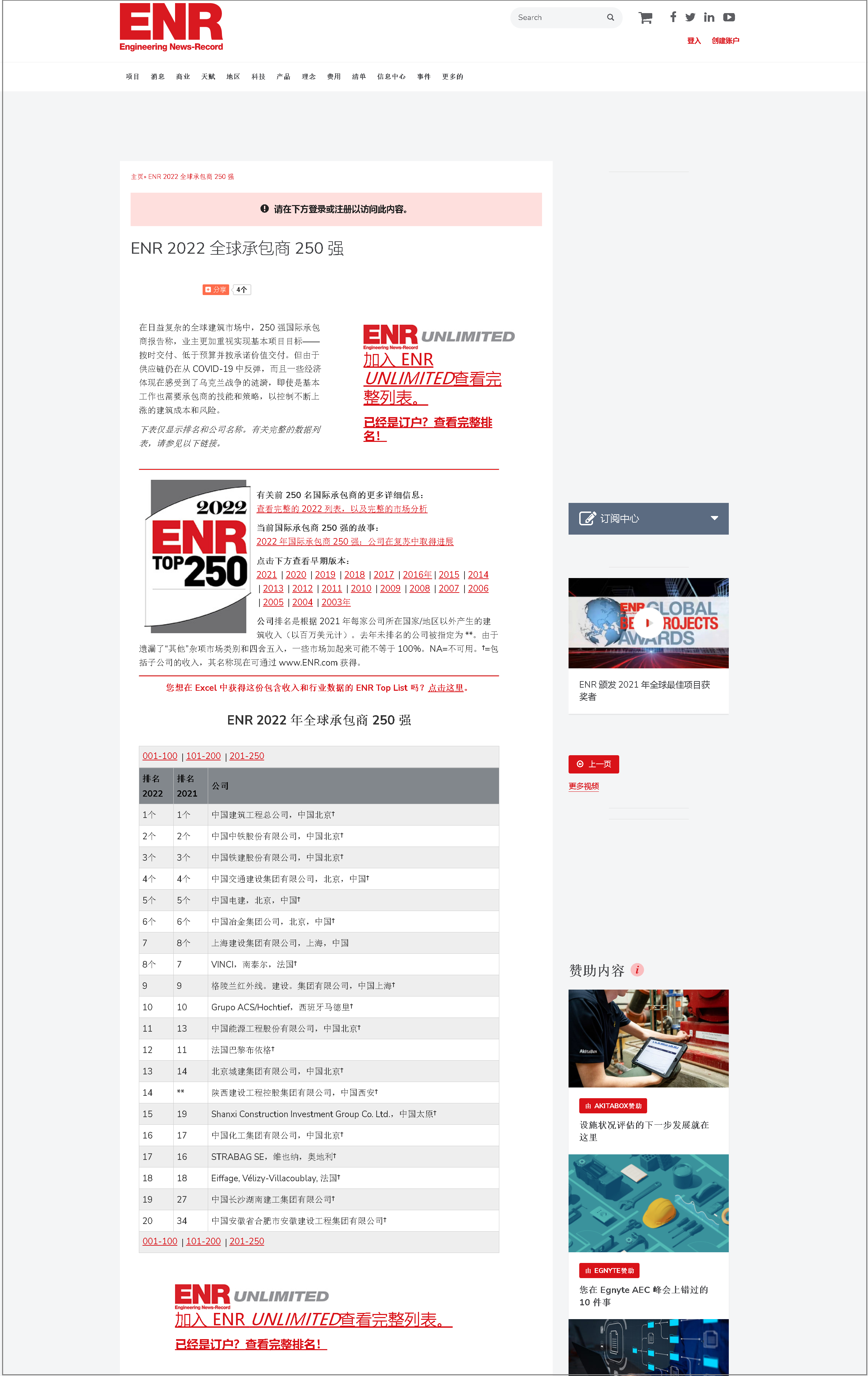 《工程新聞紀錄》,簡稱ENR,是一份美國的周刊,該刊物主要關(guān)注建筑工程領域,致力提供全球性的工程新聞、評論意見、分析數(shù)據(jù)等,ENR創(chuàng)刊于1874年,《工程新聞紀錄》(英文:The Engineering News-Record),由麥格勞·希爾集團控股。ENR每年固定出版美國及全球工程領域相關(guān)公司的規(guī)模排名,其中尤以世界承包商225強(ENR Global 225)、國際承包商225強(ENR International 225)兩項排名為全球業(yè)內(nèi)人士熟知,擁有較高權(quán)威性和知名度。