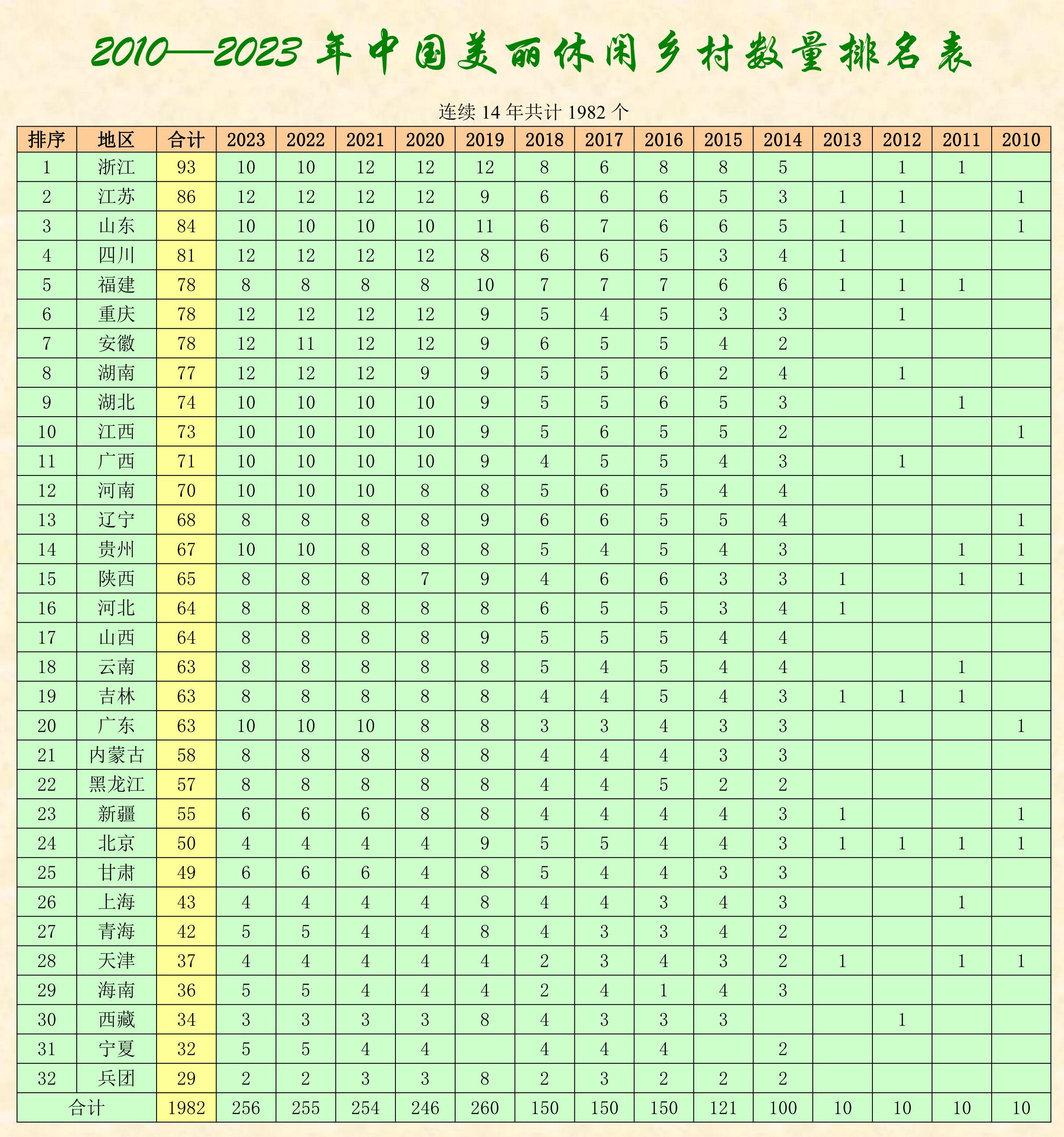 2010-2023中國美麗休閑鄉(xiāng)村名單1982個