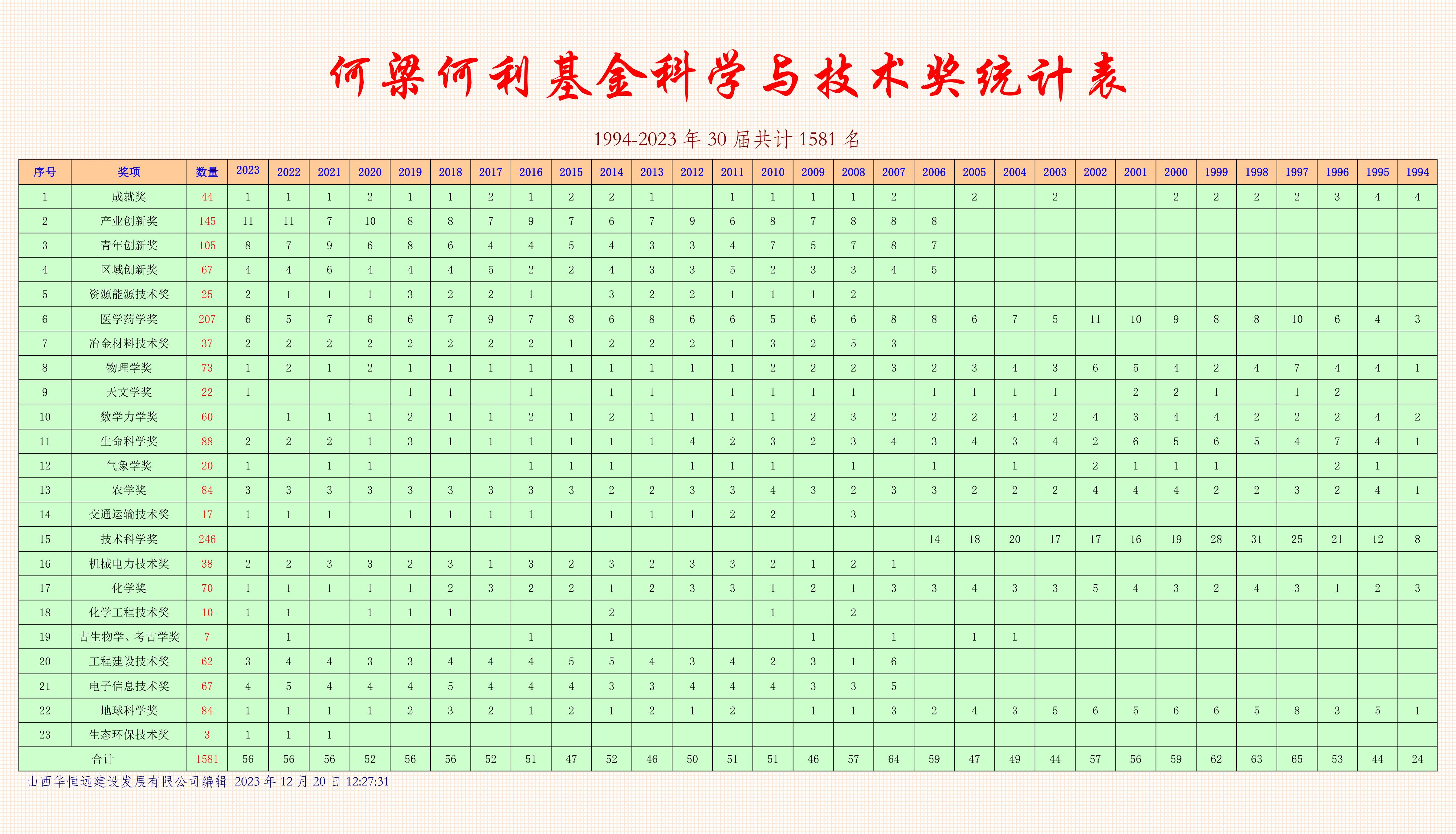 3. 黃汲清 中國地質(zhì)科學(xué)院 男 成就獎(jiǎng) 科學(xué)與技術(shù)成就獎(jiǎng) 1994 23 23.