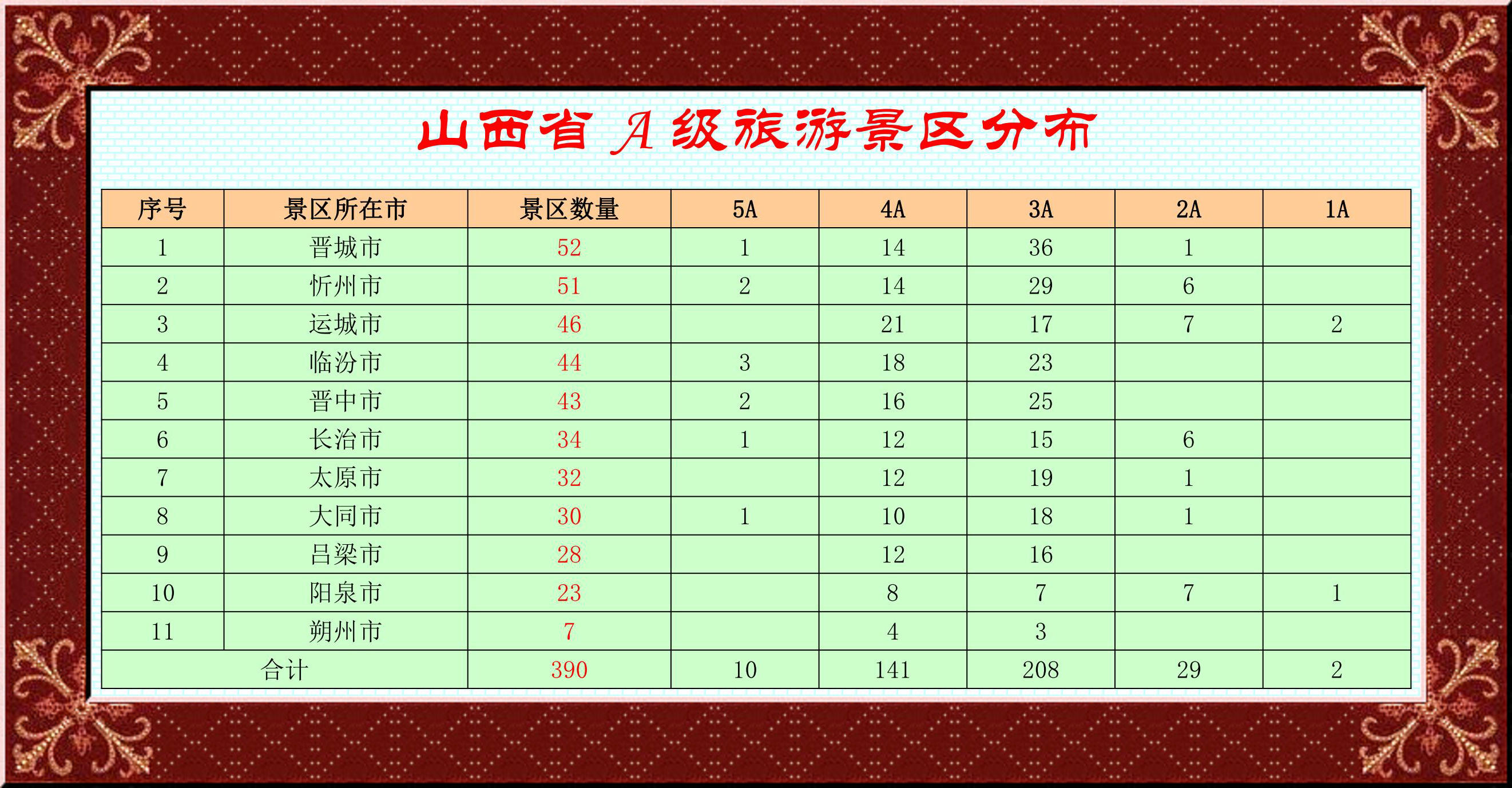 山西省A級(jí)旅游景區(qū)名錄