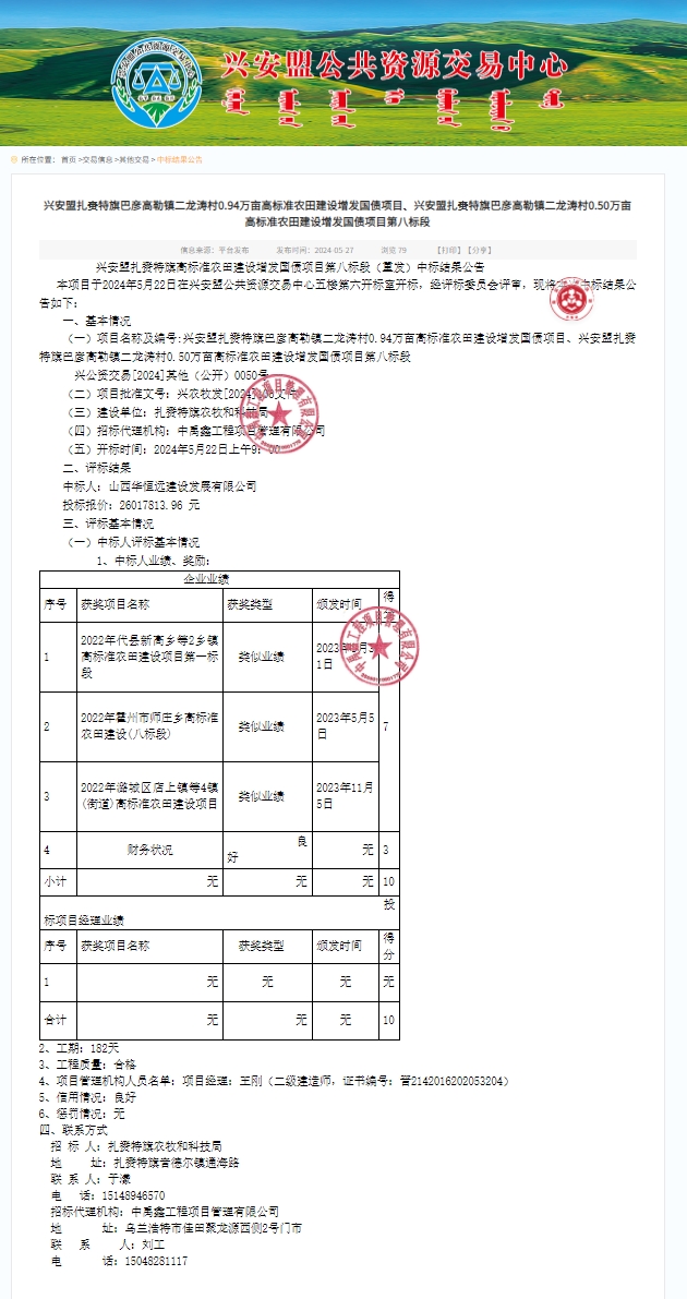 興安盟扎賚特旗巴彥高勒鎮(zhèn)二龍濤村0.94萬畝高標準農(nóng)田建設(shè)增發(fā)國債項目、興安盟扎賚特旗巴彥高勒鎮(zhèn)二龍濤村0.50萬畝高標準農(nóng)田建設(shè)增發(fā)國債項目第八標段