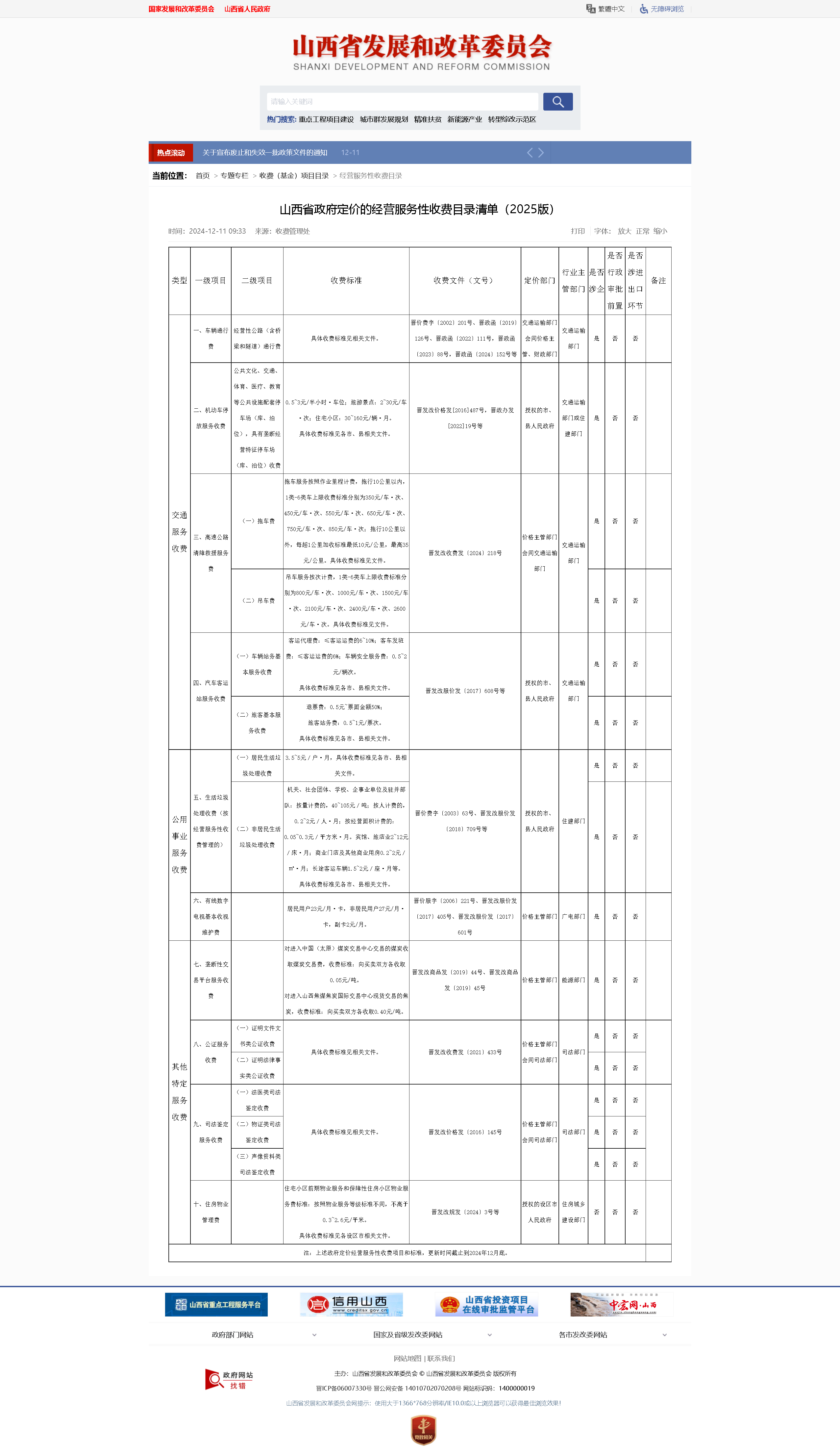 【綜合信息】山西省政府定價的經(jīng)營服務(wù)性收費目錄清單(2025版)