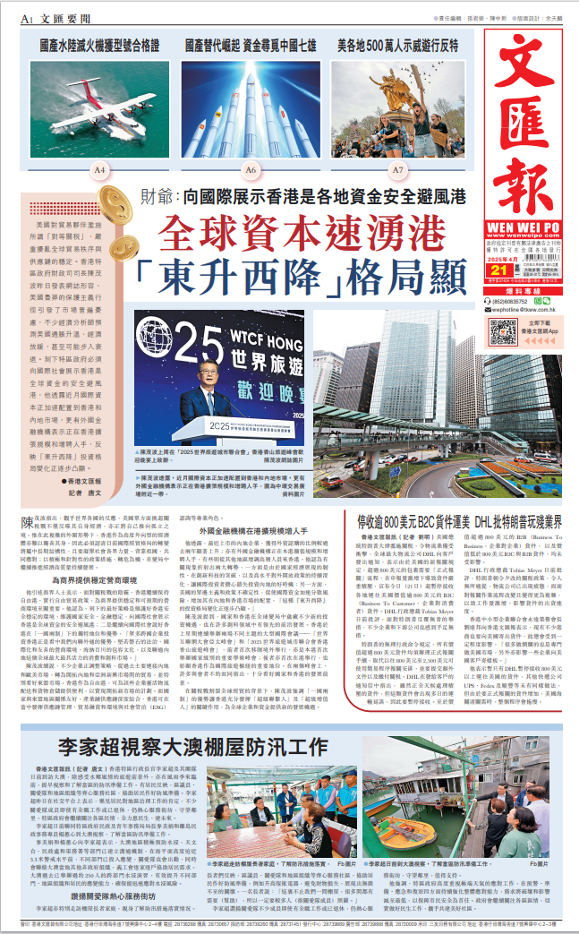 美國對貿(mào)易伙伴濫施所謂「對等關(guān)稅」,嚴重擾亂全球貿(mào)易秩序與供應(yīng)鏈的穩(wěn)定。香港特區(qū)政府財政司司長陳茂波昨日發(fā)表網(wǎng)志形容,美國魯莽的保護主義行徑引發(fā)了市場普遍憂慮,不少經(jīng)濟分析師預(yù)測美國通脹升溫、經(jīng)濟放緩,甚至可能步入衰退??滔绿貐^(qū)政府必須向國際社會展示香港是全球資金的安全避風港,他透露近月國際資本正加速配置到香港和內(nèi)地市場,更有外國金融機構(gòu)表示正在香港擴張規(guī)模和增聘人手,反映「東升西降」投資格局變化正逐步凸顯。 ●香港文匯報記者唐文