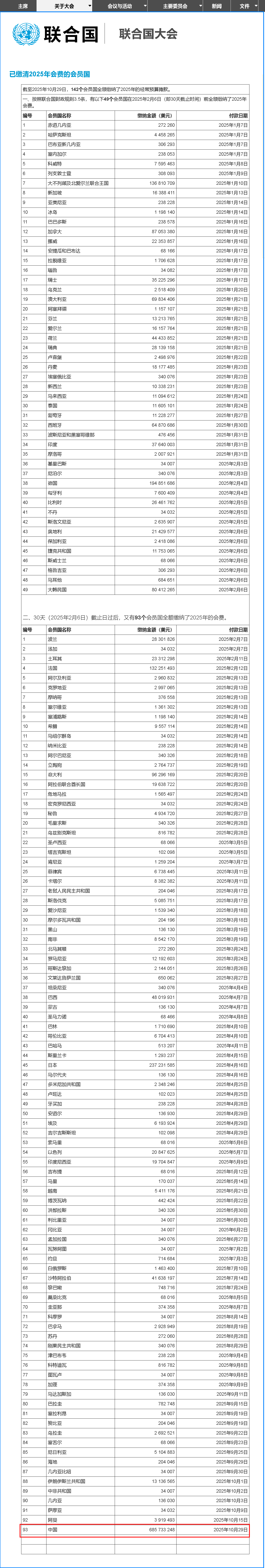 聯(lián)合國官方資料顯示,截至今年9月30日,聯(lián)合國共有57個會員國仍拖欠18.7億美元強制性會費,其中美國拖欠15億美元。