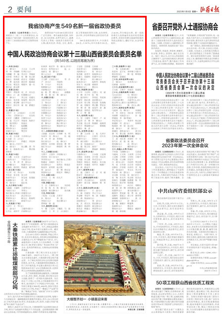 中國(guó)人民政治協(xié)商會(huì)議第十三屆山西省委員會(huì)委員名單