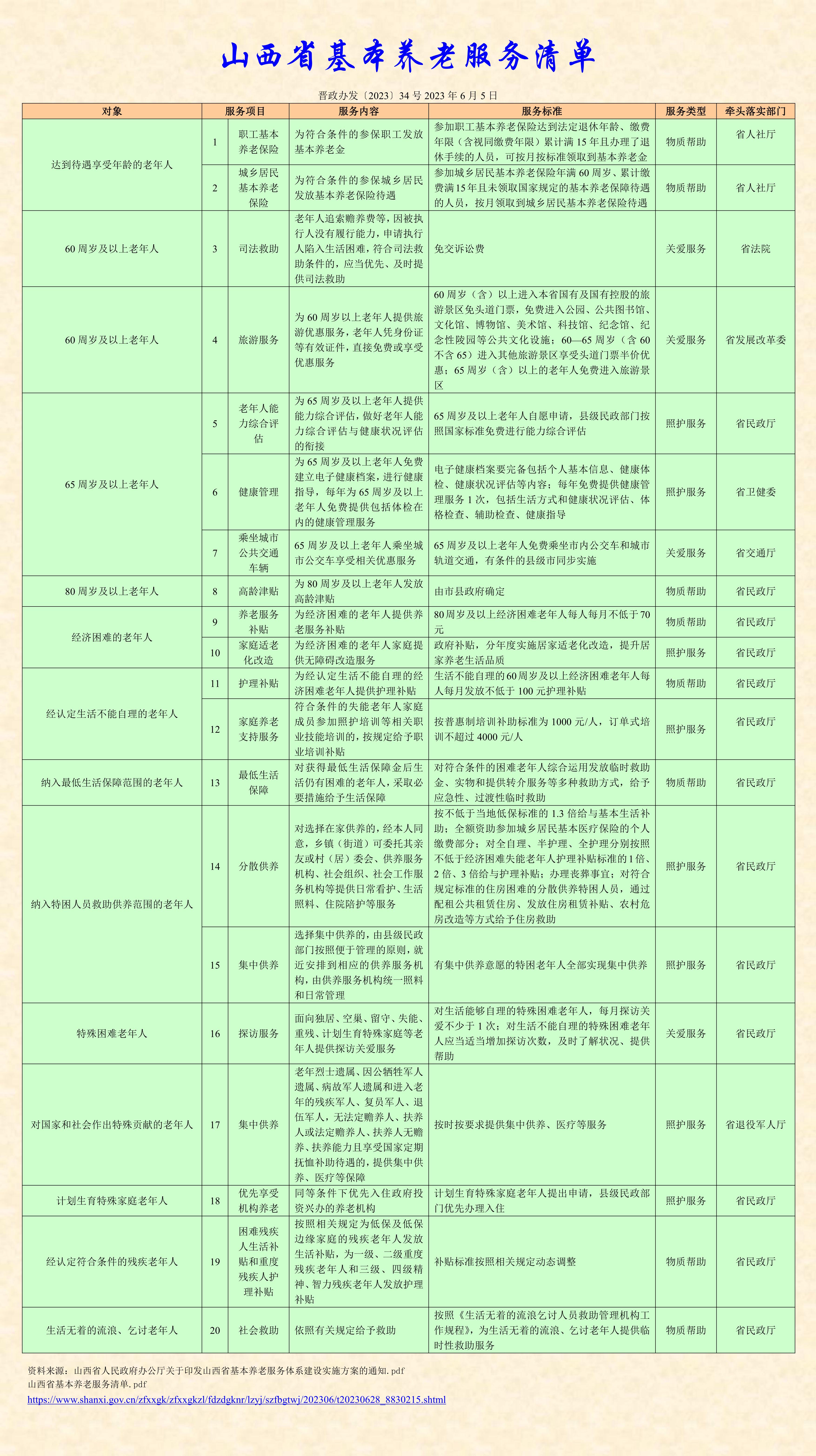 附件:山西省基本養(yǎng)老服務(wù)清單
