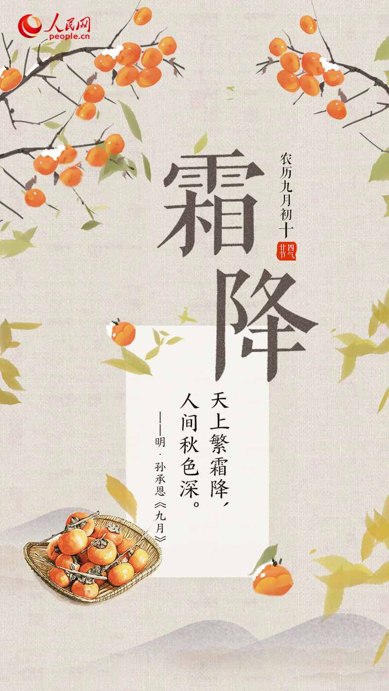 “霜降水返壑,風(fēng)落木歸山?!苯袢?,我們迎來二十四節(jié)氣中的第十八個節(jié)氣,也是秋季的最后一個節(jié)氣——霜降。此時,天空澄明,秋景濃郁,寒意愈盛,凝露成霜,隨著落葉蕭蕭歸向山林,遼闊天地間一片清明。