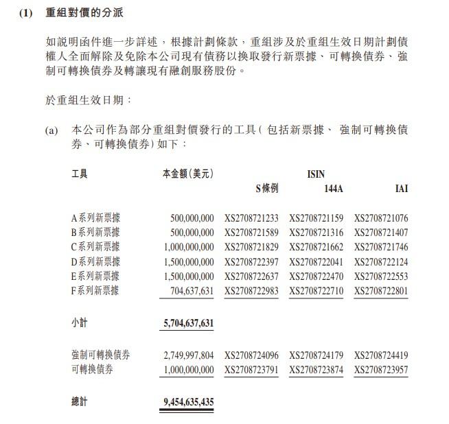 融創(chuàng)中國作為部分重組對價發(fā)行的工具。 截圖自融創(chuàng)中國公告