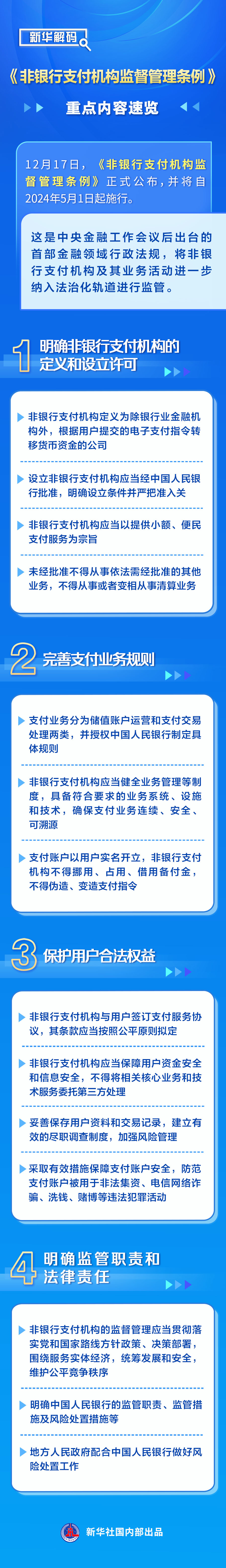 新華社北京12月17日電 題:這部法規(guī)事關(guān)非銀行支付,一起來看關(guān)鍵內(nèi)容