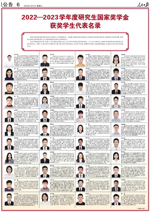 經(jīng)過(guò)嚴(yán)格選拔和評(píng)審,全國(guó)4.5萬(wàn)名研究生榮獲2022—2023學(xué)年度研究生國(guó)家獎(jiǎng)學(xué)金。以下100名研究生,是研究生國(guó)家獎(jiǎng)學(xué)金獲獎(jiǎng)學(xué)生中的優(yōu)秀代表。希望廣大青年學(xué)子從榜樣中汲取力量,樹(shù)牢科技報(bào)國(guó)志,刻苦學(xué)習(xí)鉆研,勇攀科學(xué)高峰,在推進(jìn)強(qiáng)國(guó)建設(shè)、民族復(fù)興偉業(yè)中綻放青春光彩。