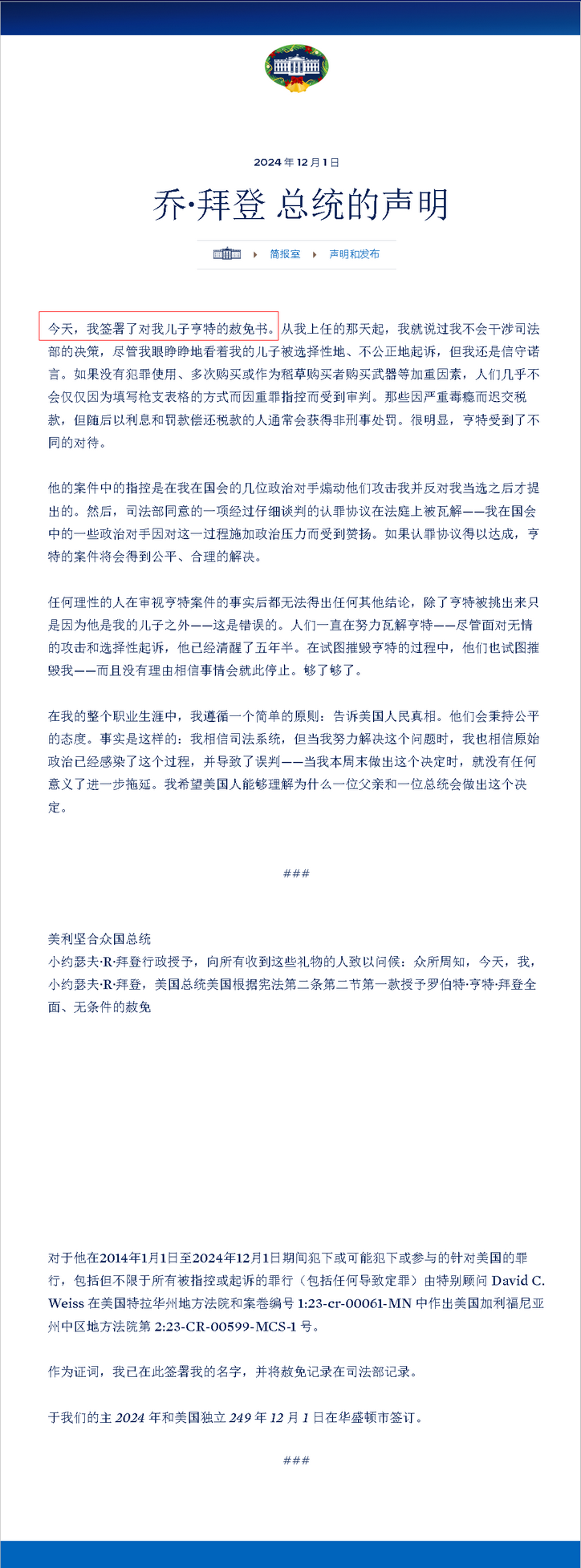 拜登臨下臺(tái)也忘不了他一生最大的敗筆是親情大于國(guó)法,做出王子犯法無罪可赦愚蠢至極的昏招!