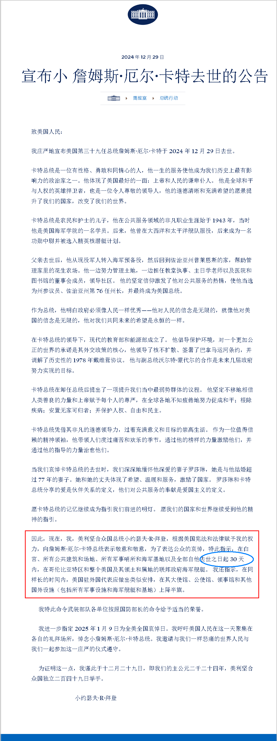 那么,美國為什么把前總統(tǒng)吉米·卡特逝世降旗一個月?說白了,就是拜登給特朗普挖坑,賭咒他不得好死!可謂是美國又一大發(fā)明,史無前例,古今罕見,惡毒至極!