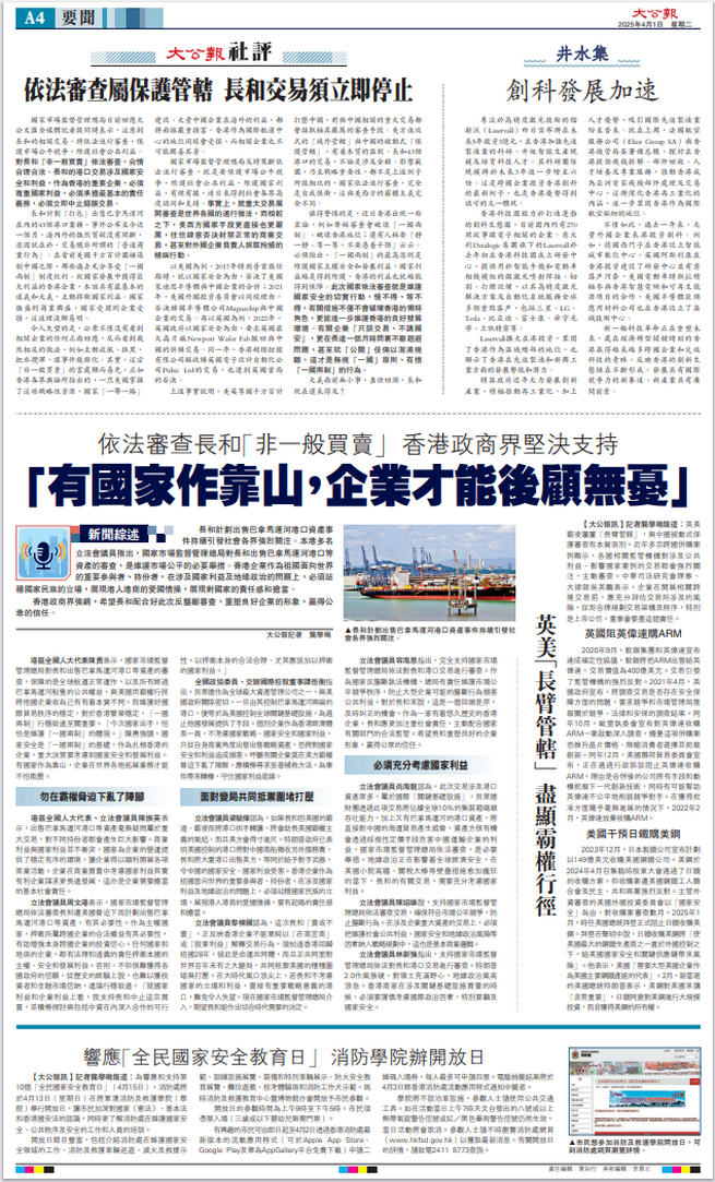 【學(xué)習(xí)園地】感悟香港《大公報(bào)》國(guó)家意識(shí)——李嘉誠(chéng)所作所為背叛祖國(guó)
