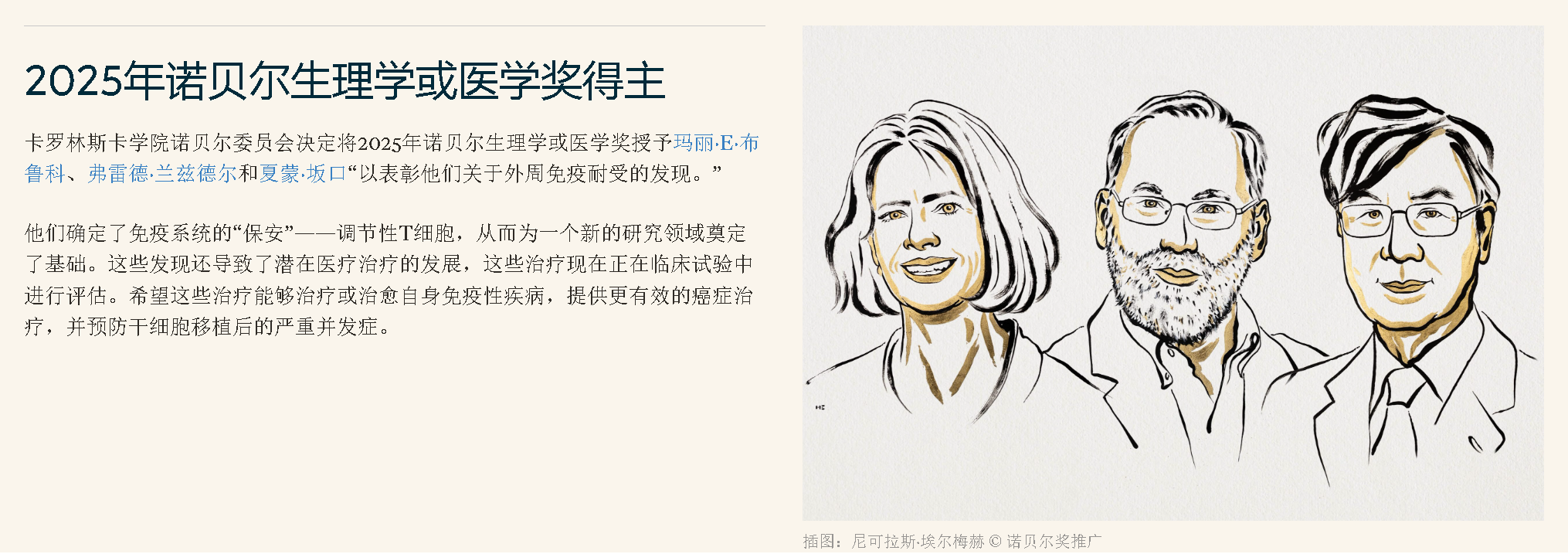 頒獎(jiǎng)機(jī)構(gòu)已決定按如下方式宣布2025年諾貝爾獎(jiǎng)獲獎(jiǎng)?wù)撸?/span>
