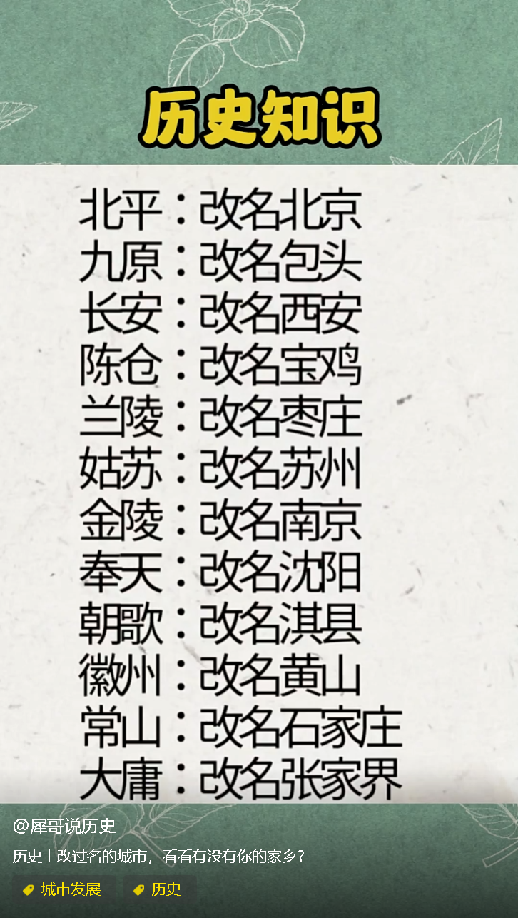 歷史上改過(guò)名的城市,看看有沒(méi)有你的家鄉(xiāng)?