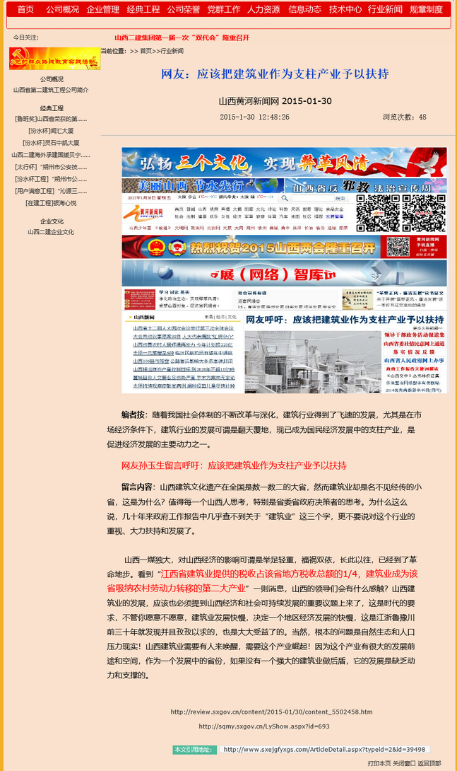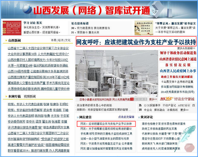 這是2015年1月30日,黃河新聞網(wǎng)在首頁(yè)頭條突出位置刊登我給省委書記王儒林的建言。