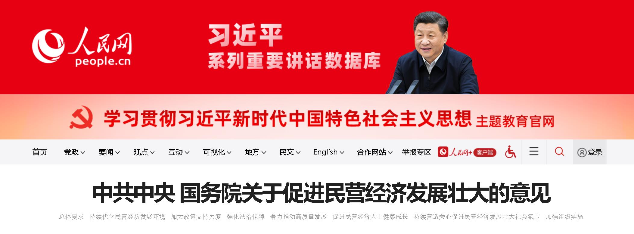 今天,《中共中央國(guó)務(wù)院關(guān)于促進(jìn)民營(yíng)經(jīng)濟(jì)發(fā)展壯大的意見(jiàn)》發(fā)布。