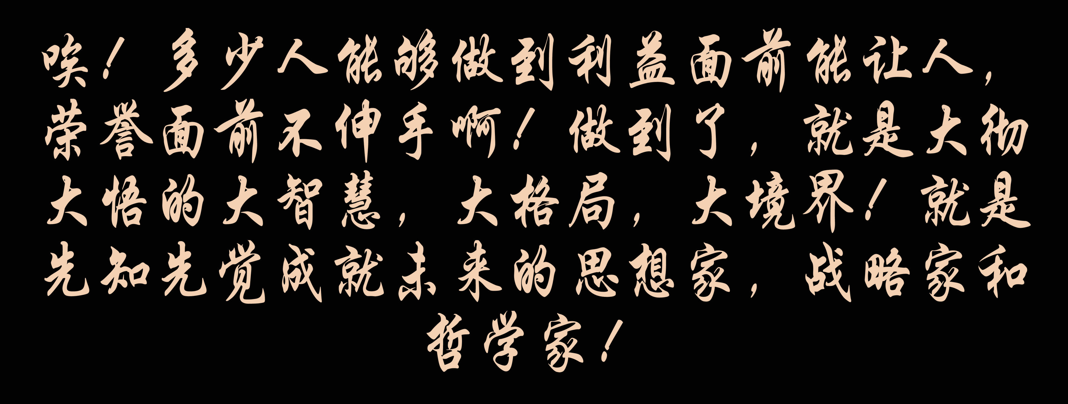 唉!多少人能夠做到利益面前能讓人,榮譽(yù)面前不伸手??!做到了,就是大徹大悟的大智慧,大格局,大境界!就是先知先覺成就未來的思想家,戰(zhàn)略家和哲學(xué)家!