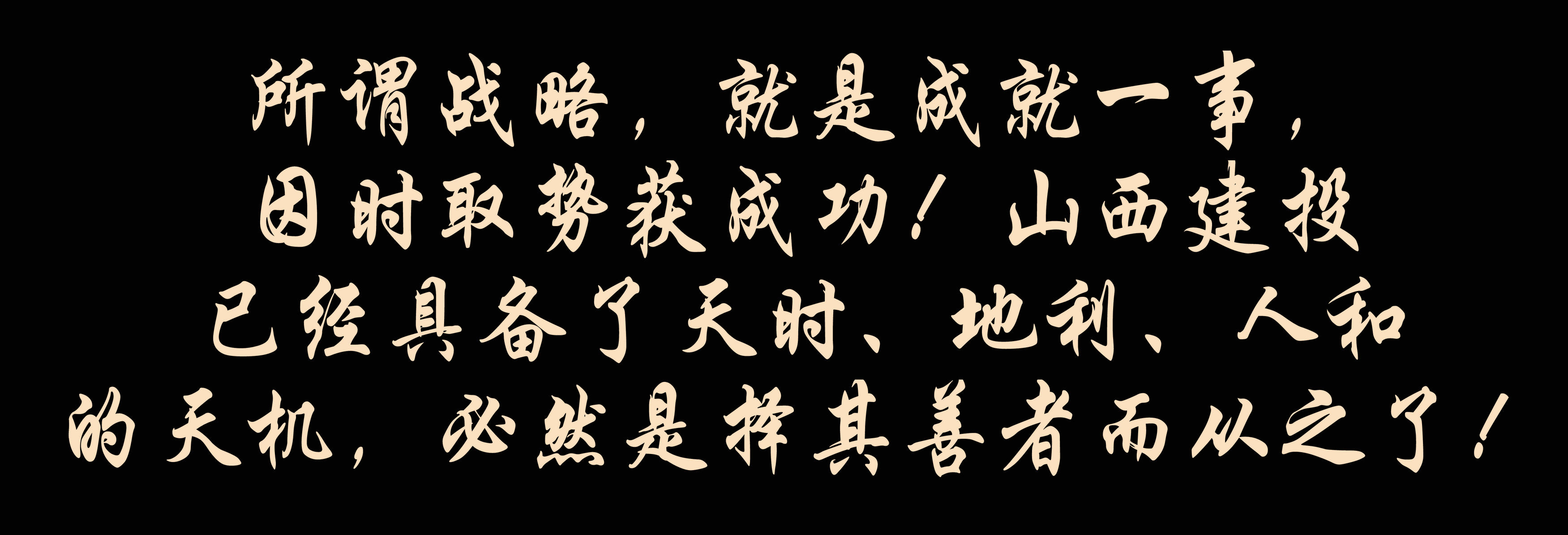 所謂戰(zhàn)略,就是成就一事,因時取勢獲成功!山西建投已經(jīng)具備了天時、地利、人和的天機,必然是擇其善者而從之了!