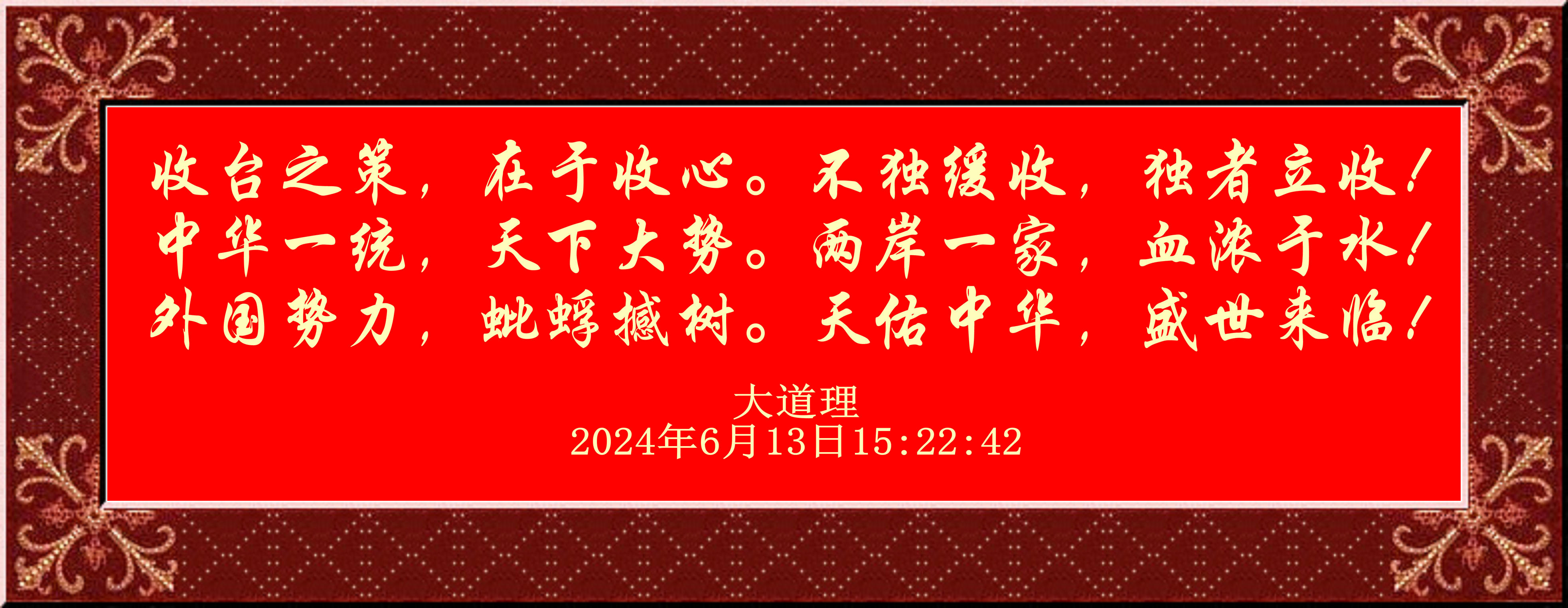 中華一統(tǒng),天下大勢(shì)。兩岸一家,血濃于水!