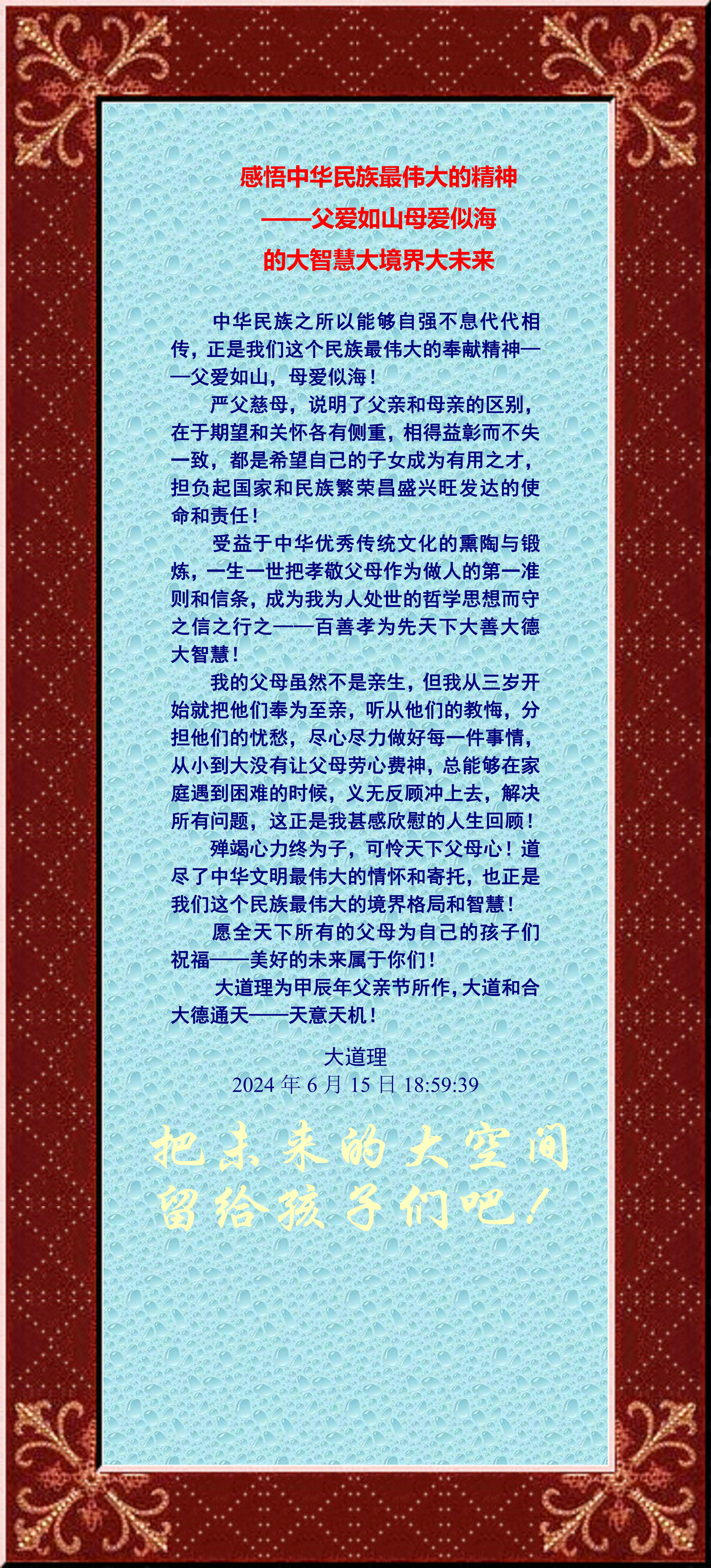 大道理為甲辰年父親節(jié)所作,大道和合大德通天——天意天機(jī)!
