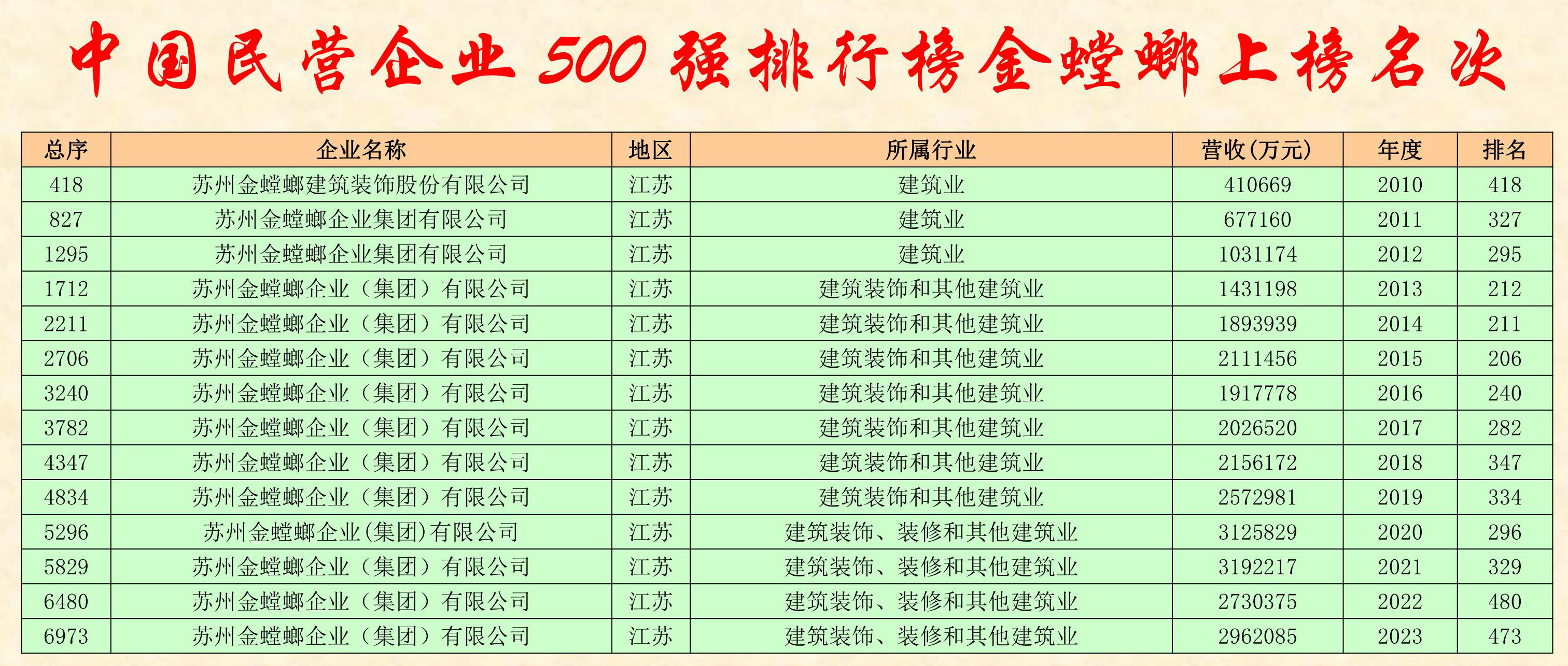 1 蘇州金螳螂建筑裝飾股份有限公司 江蘇 建筑業(yè) 410669 2010 418