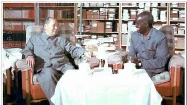1974年2月22日,毛澤東在會見贊比亞總統(tǒng)卡翁達
